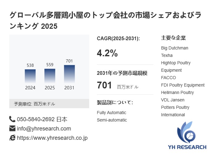 上記の図表/データは、YHResearchの最新レポート「グローバル多層鶏小屋のトップ会社の市場シェアおよびランキング 2025」から引用されている。