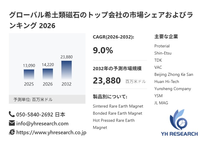 上記の図表/データは、YHResearchの最新レポート「グローバル希土類磁石のトップ会社の市場シェアおよびランキング 2026」から引用されている。