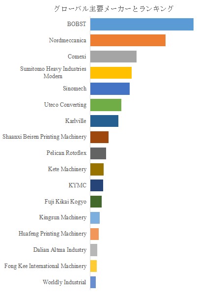 包装用ラミネーター市場では、BOBST、Nordmeccanica、Comexi、住友重機械モダン、Sinomech、Uteco Converting、Karlville、陝西北人印刷機械、Pelican Rotoflex、Kete Machineryなどが世界的な主要メーカーとして知られている。2024年時点で、上位5社が売上高ベースで約46%の市場シェアを占め、グローバル市場を主導している。これらの企業はそれぞれ独自の技術戦略を展開しており、BOBSTやNordmeccanicaは高速・高精度・省エネを兼ね備えたプレミアムモデルを、ComexiやUtecoはモジュール化による柔軟な生産対応を強みとしている。また、中国やインドの新興メーカーはコスト競争力を武器に国際市場での存在感を高めており、価格と性能の両立を図る製品が急速にシェアを拡大している。こうした企業間競争の活発化が、製品の高性能化・多様化を一層促進し、産業全体の技術水準を押し上げている。