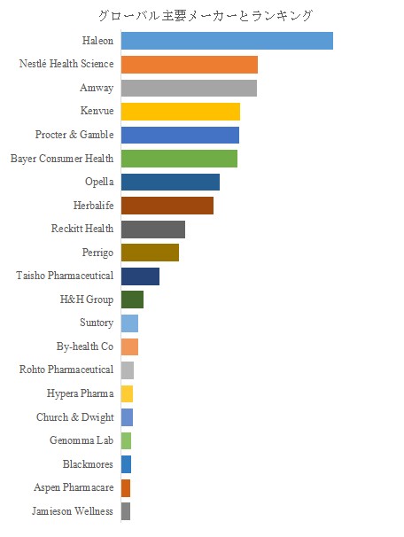 地域別に見ると、北米と欧州は引き続きブランド強度と規制体系の安定性を背景に市場を牽引している。一方、アジア太平洋地域では、所得成長と健康志向の高まりにより、栄養補助食品市場の伸びが特に顕著である。また、新興国市場では医療インフラ不足が市販薬の普及を後押しし、低価格帯と高機能帯の双方に需要が拡大している。企業レベルでは、上位企業の多くが研究開発投資と製品ポートフォリオの刷新を強化し、科学的裏付けを伴うプレミアム製品の投入を加速している。Haleonはブランド統合を通じて世界的なヘルスケア・ポートフォリオを確立し、Nestlé Health Scienceは食品領域の技術と医療ニーズの融合による新しい製品カテゴリーの創出を進めている。Kenvue、Procter & Gamble、Bayer Consumer Healthといった企業は、デジタルマーケティングや地域別戦略において高度な運用を行い、市場浸透の精度を高めている。また、アジア企業としてBy-health、Taisho Pharmaceutical、Rohto Pharmaceuticalが存在感を高め、市場の多極化が進んでいる。地域特性と企業能力が交錯し、多層的な市場構造が形成されつつあることが特徴である。