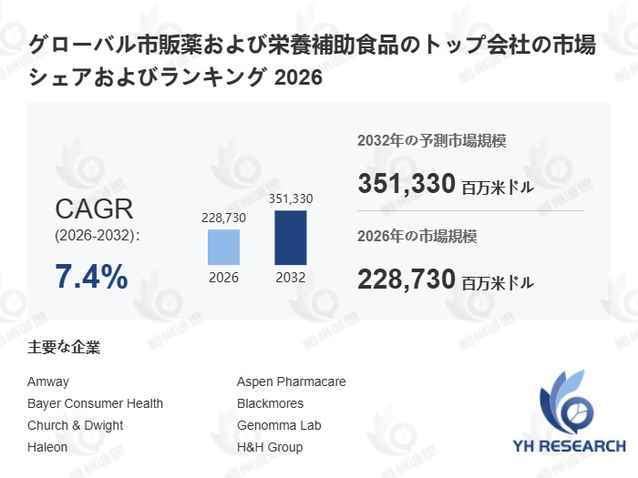 上記の図表/データは、YHResearchの最新レポート「グローバル市販薬および栄養補助食品のトップ会社の市場シェアおよびランキング 2026」から引用されている。