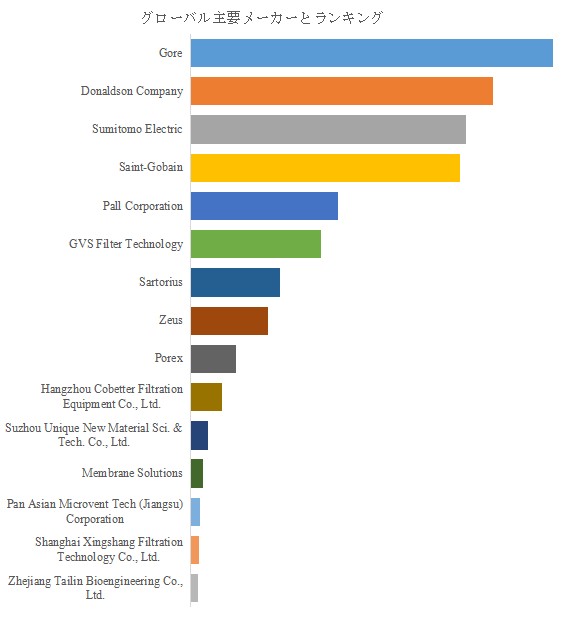 YHResearchのトップ企業研究センターによると、疎水性膜市場は、Gore、Donaldson Company、Sumitomo Electric、Saint-Gobain、Pall Corporation、GVS Filter Technology、Zeus、Sartorius、Porex、Hangzhou Cobetter Filtration Equipmentなどのグローバル企業が中心である。2024年には、トップ5企業が売上ベースで約55.0%、トップ10企業で約69.0%の市場シェアを占めており、市場は高い集中度を示している。主要企業は膜技術の高度化と製品差別化を推進し、多様な産業用途における信頼性確保を図っている。
