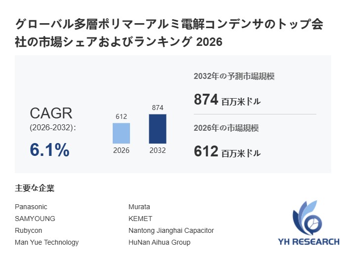 本記事は、YH Researchが発行したレポート「グローバル多層ポリマーアルミ電解コンデンサのトップ会社の市場シェアおよびランキング 2026」 を紹介しています。