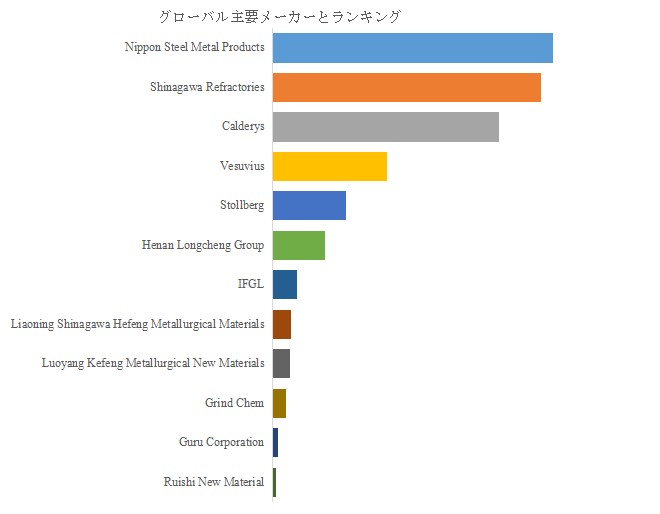 YHResearchのデータによると、世界の主要メーカーには Nippon Steel Metal Products、Shinagawa Refractories、Calderys、Vesuvius、Stollberg、Henan Longcheng Group、IFGL、Liaoning Shinagawa Hefeng Metallurgical Materials、Luoyang Kefeng Metallurgical New Materials、Grind Chem などが名を連ねている。2024年時点でトップ5社が売上ベースで約66%の市場シェアを占めるなど、技術・設備・顧客基盤に裏付けられた強固な寡占構造を形成している。これらの企業は高度な材料設計力、鉄鋼メーカーへの技術サービス体制、グローバル生産ネットワークを武器に競争優位を維持している。また、新興メーカーは中国・インドで台頭しつつあるが、高級鋼向けでは依然として既存グローバル企業が主導権を握る市場環境が続いている。
