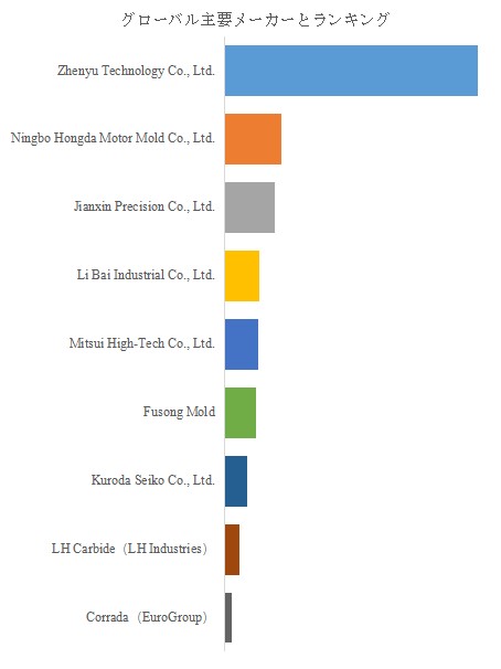 世界の主要なモーターコア順送プレス金型メーカーには、Zhenyu Technology Co., Ltd.、Ningbo Hongda Motor Mold Co., Ltd.、Jianxin Precision Co., Ltd.などが名を連ねる。これらの企業は長年にわたって精密金型技術を磨き上げ、EV用モーターや高周波対応鉄芯の分野で高い信頼を確立している。YHResearchによると、2024年時点で世界トップ3企業が約20%の市場シェアを占めており、業界は少数精鋭型の競争構造を形成している。中国勢の技術的台頭に加え、日本や韓国企業も微細加工や高速順送技術で差別化を図っており、各社ともAI設計やシミュレーション解析を取り入れた“スマート金型”への転換を進めている。このような動向は、単なる製造業から知識集約型産業への進化を象徴している。