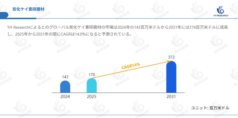 YHResearchの最新調査グローバル炭化ケイ素研磨材のトップ会社の市場シェアおよびランキング 2026によれば、2024年の143百万米ドルから2031年には374百万米ドルに成長し、2025年から2031年の間にCAGRは14.0%になると予測されている。この成長を牽引するのは、パワー半導体基板の需要急増である。EVインバータや急速充電装置、太陽光発電向けパワーモジュールなどの分野で、SiCウエハの採用が急速に進むことで、研磨材の消費量が指数関数的に増加している。