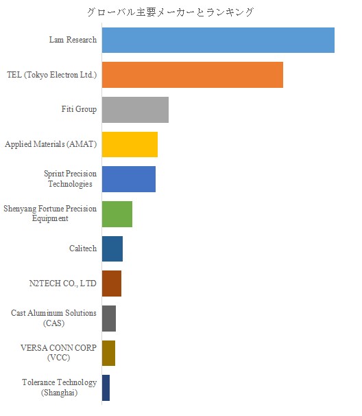 YHResearchのトップ企業研究センターによると、半導体エッチング装置用チャンバーライナーの世界的な主要製造業者には、Lam Research、TEL (Tokyo Electron Ltd.)、Fiti Group、Applied Materials (AMAT)、Sprint Precision Technologies、Shenyang Fortune Precision Equipment、Calitech、N2TECH CO., LTD、Cast Aluminum Solutions (CAS)、VERSA CONN CORP (VCC)などが含まれている。2024年、世界のトップ5企業は売上の観点から約81.0%の市場シェアを持っていた。