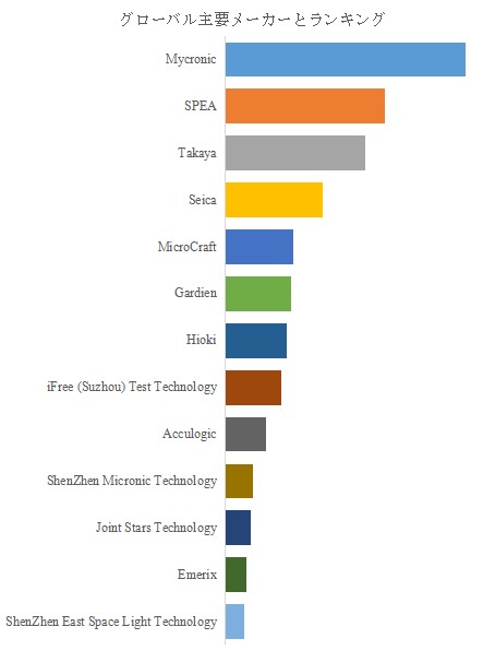 フライングプローブテスター市場は一部のグローバル企業が強い競争力を持つ寡占的な構造である。YHResearchによると、Mycronic、SPEA、Takaya、Seica、MicroCraft、Gardien、Hioki、iFree (Suzhou) Test Technology、Acculogic、ShenZhen Micronic Technologyといった企業が主要なプレイヤーであり、2024年には世界トップ5社が売上シェアの約66.0%を占めている。これら企業は長年にわたり技術力と顧客基盤を築き上げ、グローバル市場での信頼性を確立している。一方で、新興企業はコスト競争力やローカル市場対応力を武器に存在感を高めており、多様なニーズに応じた差別化が進展している。競争環境は技術革新と顧客要求の高度化を背景にダイナミックに変化しており、業界全体の進化を牽引する推進力となっている。
