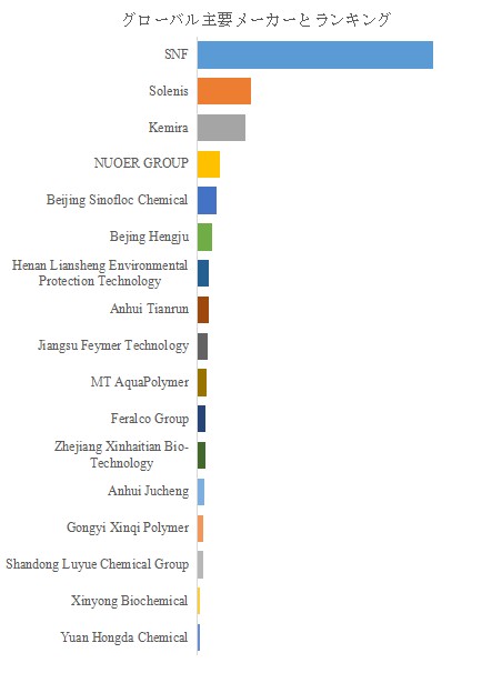 欧州企業は、分子設計技術、品質管理体制、グローバルサービス網に強みを持ち、高付加価値市場で競争優位を確立している。北米企業は、産業用水処理におけるカスタマイズ力、供給信頼性、環境規制対応力で市場シェアを拡大している。一方、アジア市場では、中国企業がコスト競争力と地域密着型サービスを背景に成長を続け、国内需要の増加や輸出市場の開拓によりプレゼンスを強化している。日本市場においては、高度な排水規制、製紙・化学産業の環境投資、自治体の下水処理改善計画が製品導入を促進し、欧州・アジア勢との競争環境を形成している。地域ごとに市場特性や導入ニーズが異なることから、企業は製品ラインアップの多様化、技術サポート体制、規制対応力を総合的に競争力として構築する必要がある。