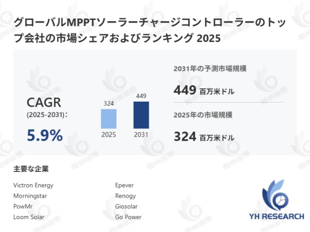 本記事は、YH Researchが発行したレポート「グローバルMPPTソーラーチャージコントローラーのトップ会社の市場シェアおよびランキング 2026」 を紹介しています。