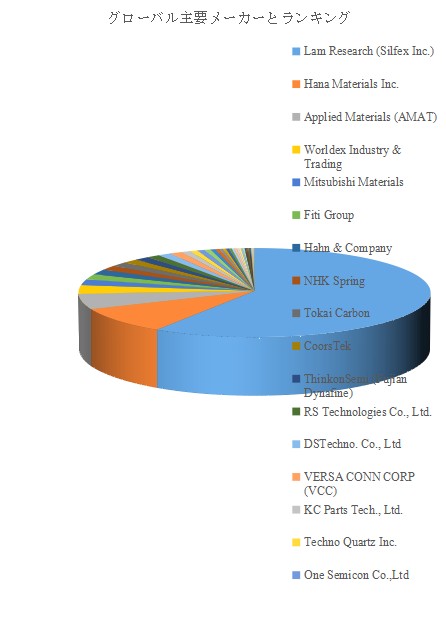 市場の成長を牽引する一方で、その競争環境は寡占的な色合いを強めている。YHResearchのトップ企業研究センターによると、2024年時点でLam Research (Silfex Inc.)、Hana Materials Inc.、Applied Materials (AMAT)、Worldex Industry & Trading、Mitsubishi Materials、Fiti Group、NHK Spring、Hahn & Company、Tokai Carbon、CoorsTekといった主要10社が、売上ベースで世界市場の約84.0%を占めていた。これらの企業は、最先端の研究開発力と長年にわたる量産実績を背景に、顧客からの信頼を確固たるものとしている。技術面では素材多様化や流路設計の高度化を競い合い、顧客企業との長期的なパートナーシップを築くことで市場での優位を確保している。新規参入企業にとっては参入障壁が極めて高い領域であり、既存リーダー企業の投資戦略や技術革新が今後の市場構図を決定づけることになる。