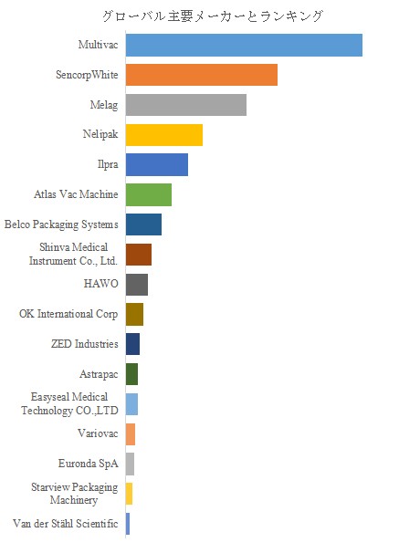 グローバル市場においては、ドイツのMultivacが圧倒的な技術力とブランド信頼性で首位に立ち、包装工程の自動化と統合制御に優れたソリューションを提供している。続くSencorpWhite(米国)やMelag(ドイツ)は、医療・歯科分野における封止管理のデジタル化を推進し、記録管理や接続性の強化を通じて付加価値を高めている。一方、NelipakやIlpraなど欧州メーカーは医療機器製造ライン向けの高精度熱封システムに強みを持ち、Atlas Vac MachineやBelco Packaging Systemsなど米国勢は、大型医療機器包装の自動化で優位性を確立している。アジアではShinva Medical Instrument(中国)やEasyseal Medical Technology(中国)、Euronda(イタリア)などが台頭し、コスト効率と操作簡便性を武器に急成長を遂げている。