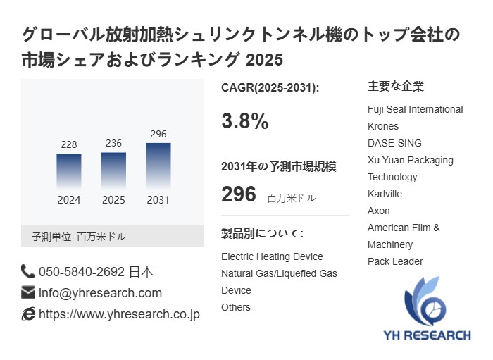 上記の図表/データは、YHResearchの最新レポート「グローバル放射加熱シュリンクトンネル機のトップ会社の市場シェアおよびランキング 2025」から引用されている。